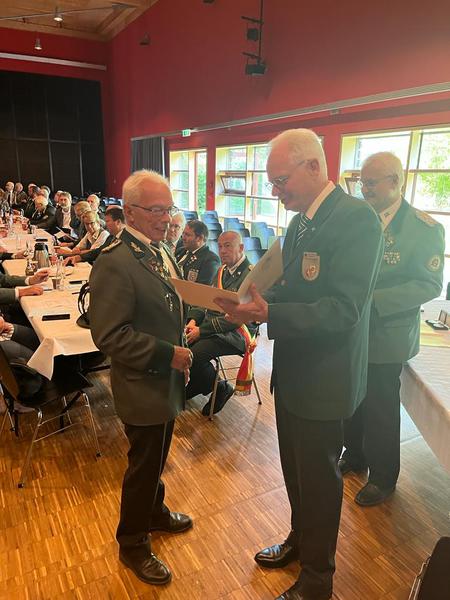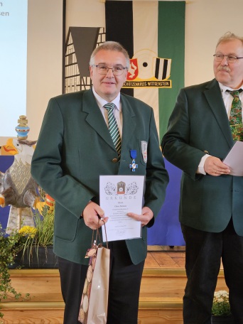 Am 29.09.2024 erhileten Waltraut Schübbe und Hans-Jürgen Schröder anlässlich der Jahreshauptversammlung des Bezirks III Ostwestfalen in Lemgo, vom Präsidenten des Westfälischen Schützenbundes, Herrn Dr. Maik Hollmann und vom Vorsitzenden des Bezirks III Ostwestfalen-Lippe, Herrn Rüdiger Eichhorn, die Kölner Medaille verliehen. Die Kölner Medaille ist die höchste Auszeichnung des Westfälischen Schützenbundes für verdiente Schützen.