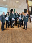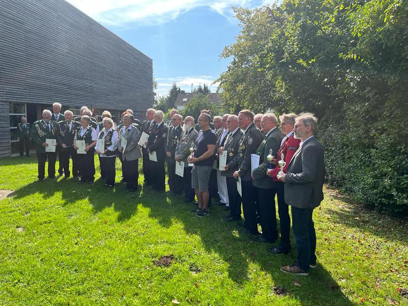 Auch heute wurden noch einige Auszeichnungen verliehen - nun von der Vereinsmeisterschaft 2023. Michael Wahl erhielt Bronze für KK und LG. Silber erhielten Steffi Kreimer (LG), Sabine Philipp (KK + LG), Kai Merkel (LP) und Sven Rahlmeier (KK + LG). Mit Gold wurden Ela Steeb (KK + LG), Elke Heitkamp (KK + LG), Sabine Lohan (LG), Jonas Rolfsmeier (LG), Gerald Laker (LP), Myles Kollmeier (LP), Andreas Justen (LG), Lars Brindöpke (LG) und Mathias Kollmeier (KK + LG) ausgezeichnet. Außerdem erhielten Jonas Rolfsmeier, Kai Merkel und Sabine Lohan die grüne Schnur inklusive Eicheln und Holger Millhoff die silberne Schnur inklusive Eicheln.